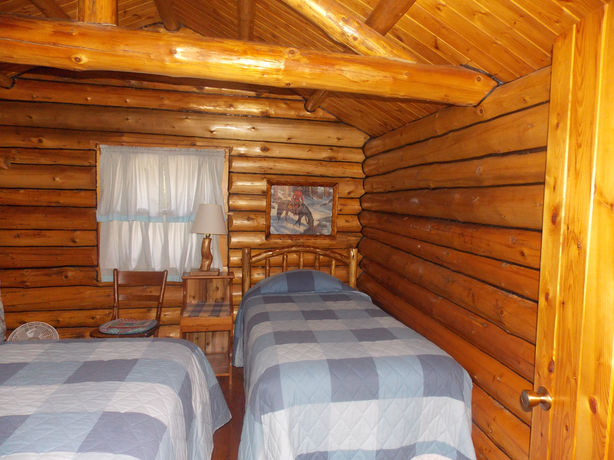 One queen bed and three twin beds in a two-bedroom, one bathroom fully furnished cabin.